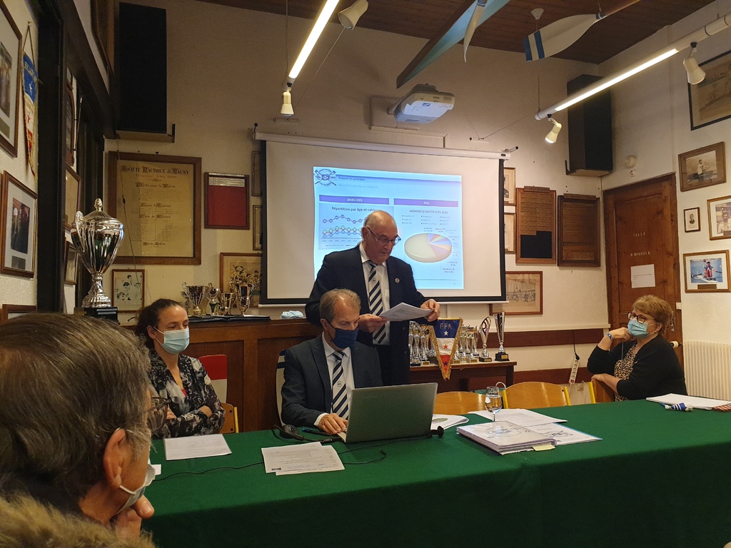 Le déroulement de l’Assemblée se poursuit par l’exposé de la Trésorière, Nathalie Collet, des résultats sportifs par le Vice-président, Ivan Gaudefroy, du rapport du vérificateur des comptes, Olivier Thierry, de l’approbation des différents rapports et