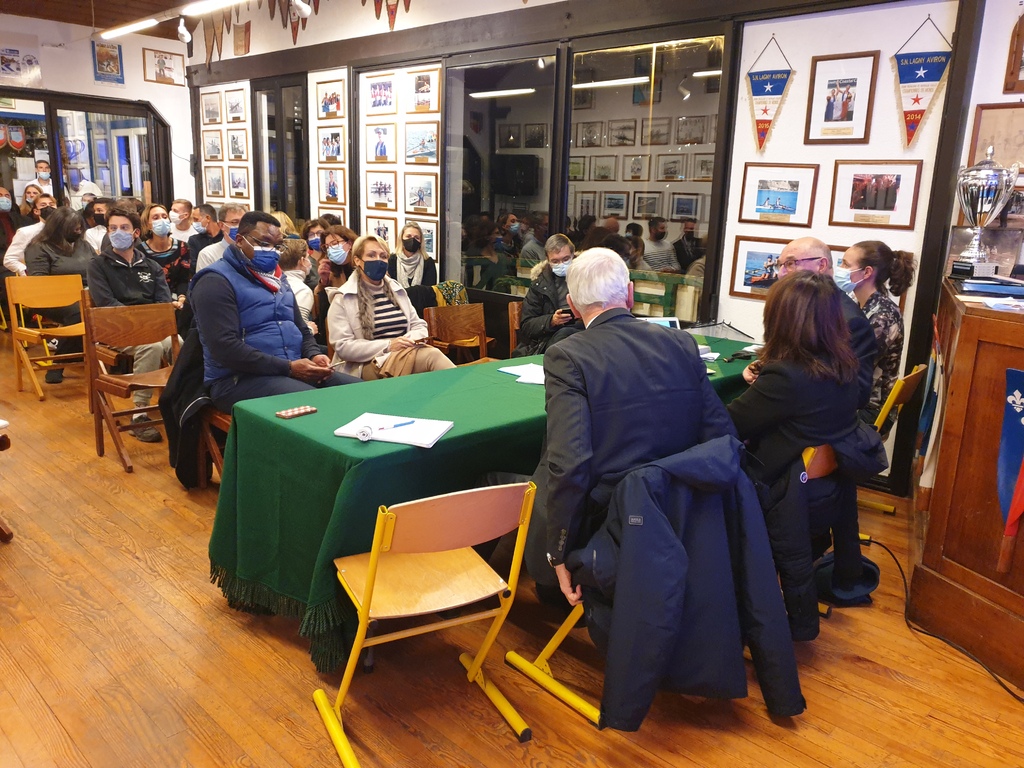 La SNL, sous réserve des aménagements programmés, est identifiée, base arrière des JO 2024 par le centre de préparation aux jeux »CPJ». Suite à la présentation des plans par projection à l’Assemblée, le Président de la SNL, Gérard HILAIRE, passe la parole à Monsieur le Maire Jean-Paul Michel, qui fait un état d’avancement sur le dépôt du permis de construire, dont les partenaires pour le financement sont :